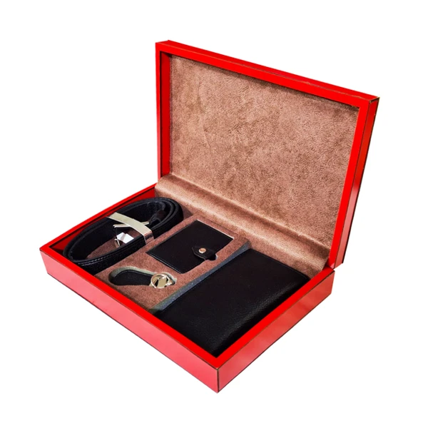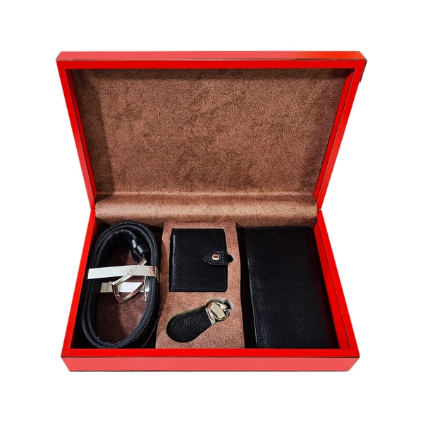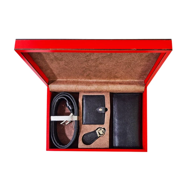این ست هدیه مردانه شامل چهار محصول کاربردی چرمی است که همگی از چرم گاوی باکیفیت ساخته شدهاند:
